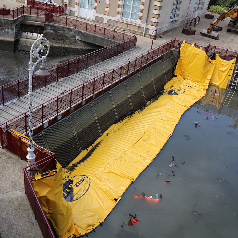 Si la vitesse du courant est importante, il est recommandé d’entraver au maximum le flux du bras à barrer pour faciliter la pose (vannage, planches de bois, big-bags).